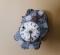| Klocka med urverk av metall och ställning av trä. Klockan är mycket rostskadad och söndrig. | |