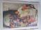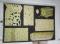 | En samling med 11 stycken provrör i olika storlekar, former och med olika inskriptioner och texter. Trälådans botten är i dåigt sick. | |