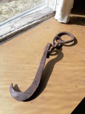 Stenvändare av smidesjärn. Kroken fästes i en sten. I den yttersta ringen bände man med ett spett tills stenen gav efter.