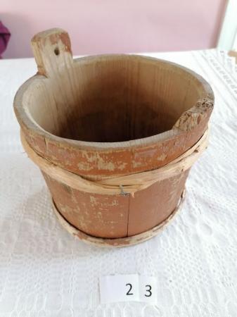 Smörbytta av trä målat rödbrunt.
