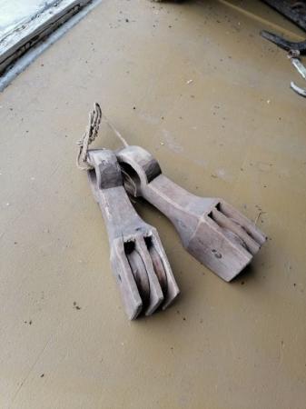 Två lunnor med ställning för två trissor per lunna. Användes i vävstol.