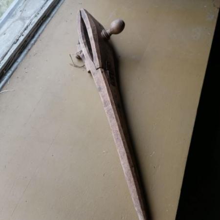 Selaklova av trä. Användes för att knipa fast läderarbeten.