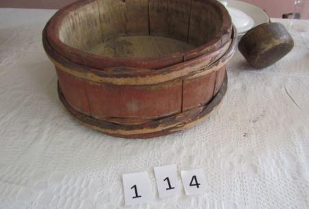 Filbunke av trä. Användes för att bevara och produera filmjölk med bakeriefloran som sparats från den förra satsen.