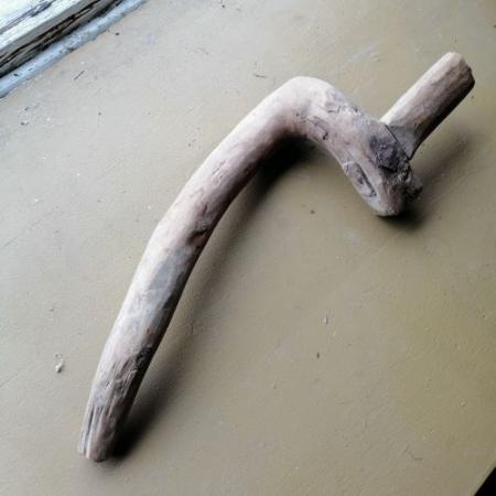 Skakelkrok av trä. För att kroka fast skaklarna.