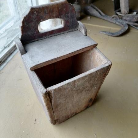 Mjölkar av trä. Användes vid förvarning av mjöl. Daterat 1835. Med bomärke.