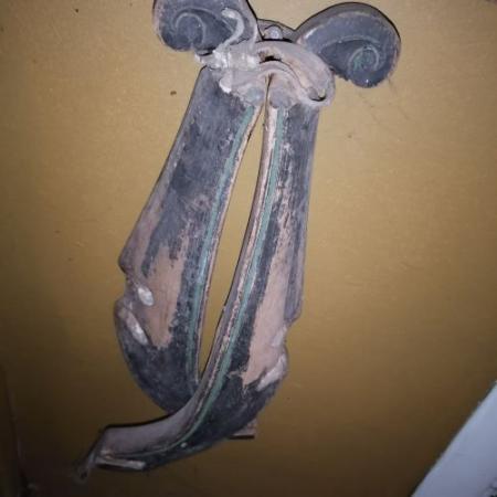 Gjort av trä. Svartmålade med klargrön dekorationsrand i kanten. Användes för vinterbruk