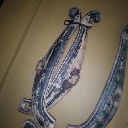 Gjorda av trä. Svartmålade - mycket slitna. För sommarbruk.