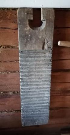 Valkbräde skuret ur ett stycke trä. Användes för att valka ylletyger.