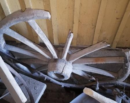 Kärrhjul av trä - söndrigt.