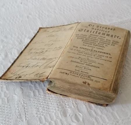 Andaktsbok med läderpärm. Daterat 1836. På pärmens insida flera gånger skrivet "tillhör Fru Fredrik Öhman 1869 Nykarleby". På bakpärmen flera gånger "Tillhör Gustaf Öhman".
