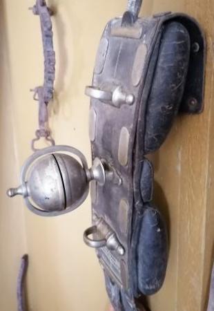 Sidolk av läder och metall. Användes för att rida häst i mörker - klockan klingade.