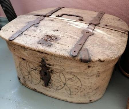 Resvacka av trä med järnbeslag.