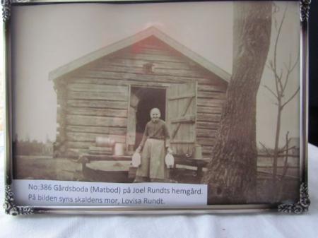Gårdsboda (Matbod) på Joel Rundts hemgård. På bilden syns skaldens mor, Lovisa Rundt