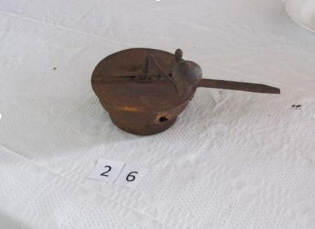 Kaffebrännare av järn. Användes för att rosta kaffe vid öppen eld. Med väven kunde kaffebönorna blandas.