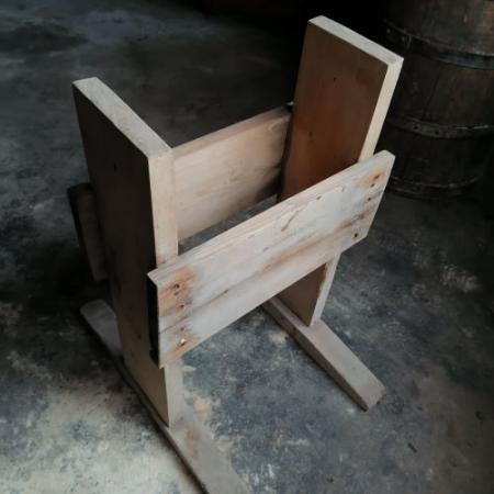 Smörpress v trä. Användes vid mejeriet för att pressa smöret till rätt storlek.