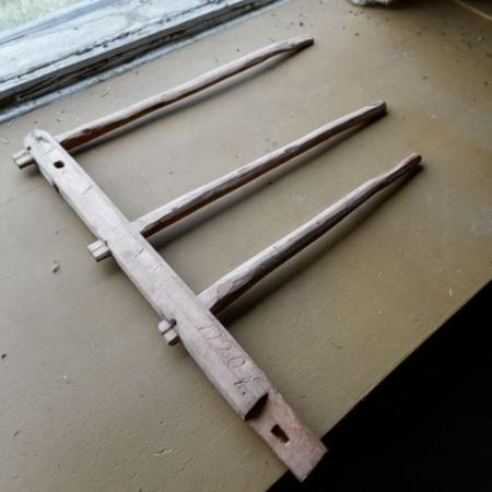 Liesvipa av trä. Användes genom att fästa den vinkelrätt i lien. Då kunde säden samtidigt svepas ihop. Från 1920.