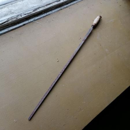 Alnsticka av metall med trähandtag. Användes vid mätning.