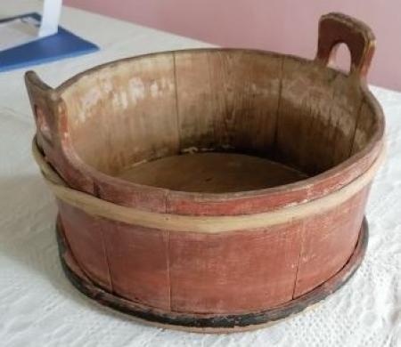 Smörbunke av trä. Målat rött.
