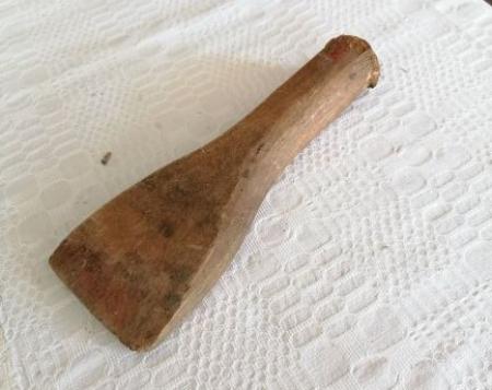 Drevträ skuret ur ett stycke. Användes för att pressa in tätning mellan stockarna vid husbygge.